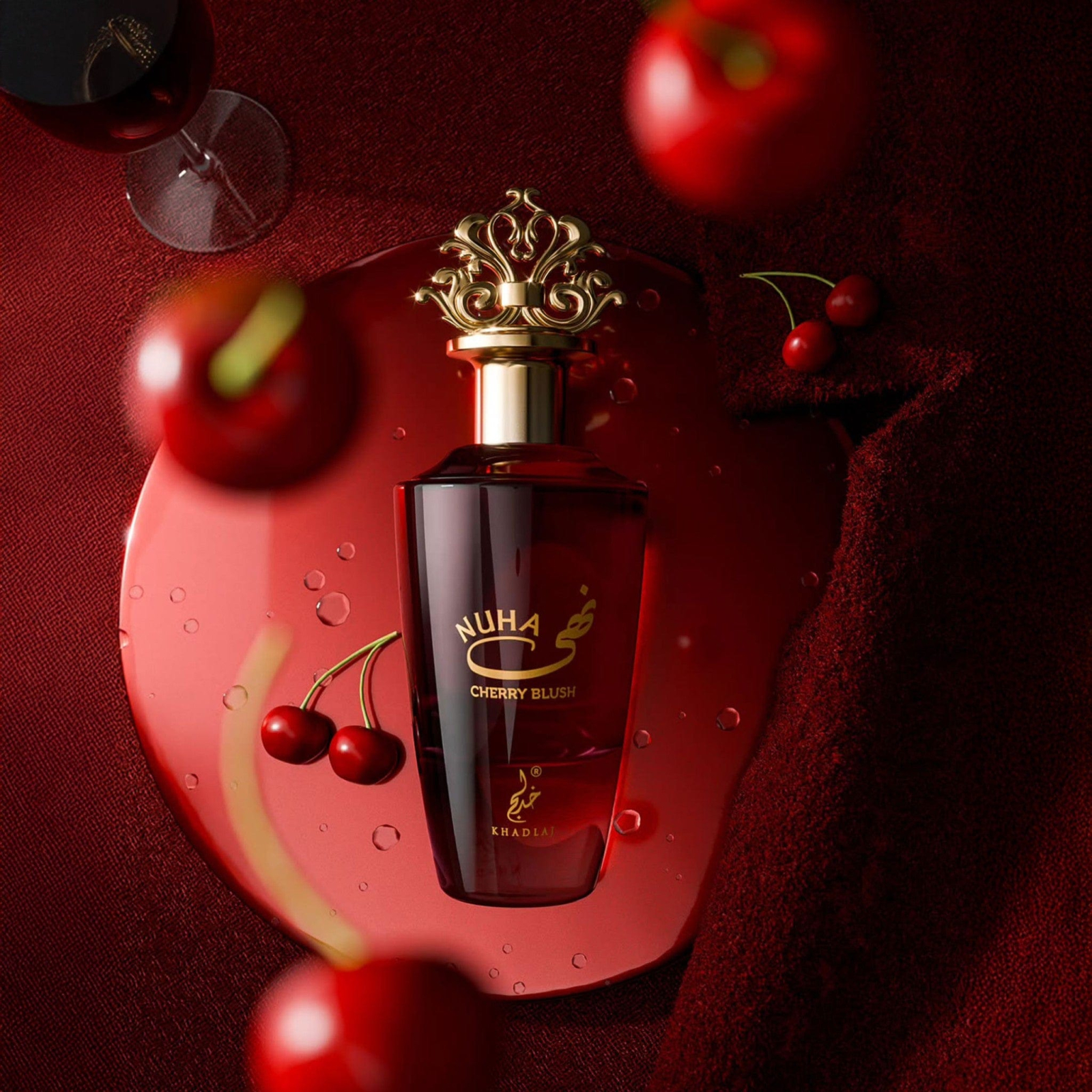 Casa de parfumuri: Khadlaj Apa de Parfum Dama: Nuha Cherry Blush Note de varf: Cirese, Rom, Vin Note de mijloc: Iasomie, Trandafir, Orris, Zmeura, Lemn de cedru Note de baza: Tonka, Labdanum, Vanilie, Vetiver, Lemn de santal, Mosc